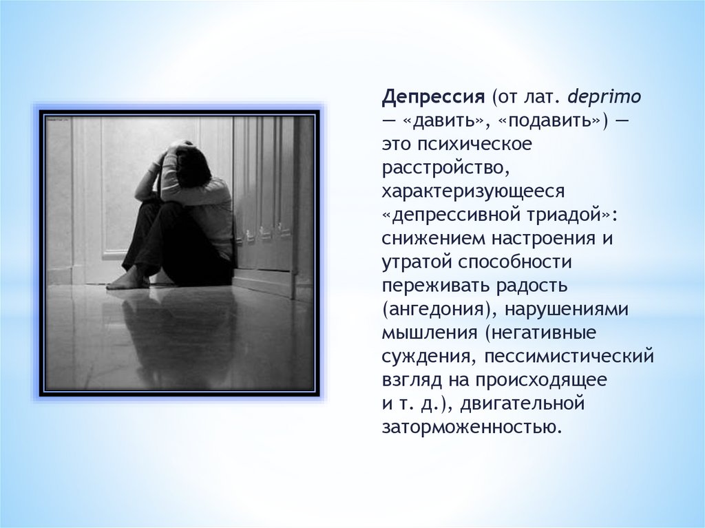 Депрессия (от лат. deprimo— «давить», «подавить») —