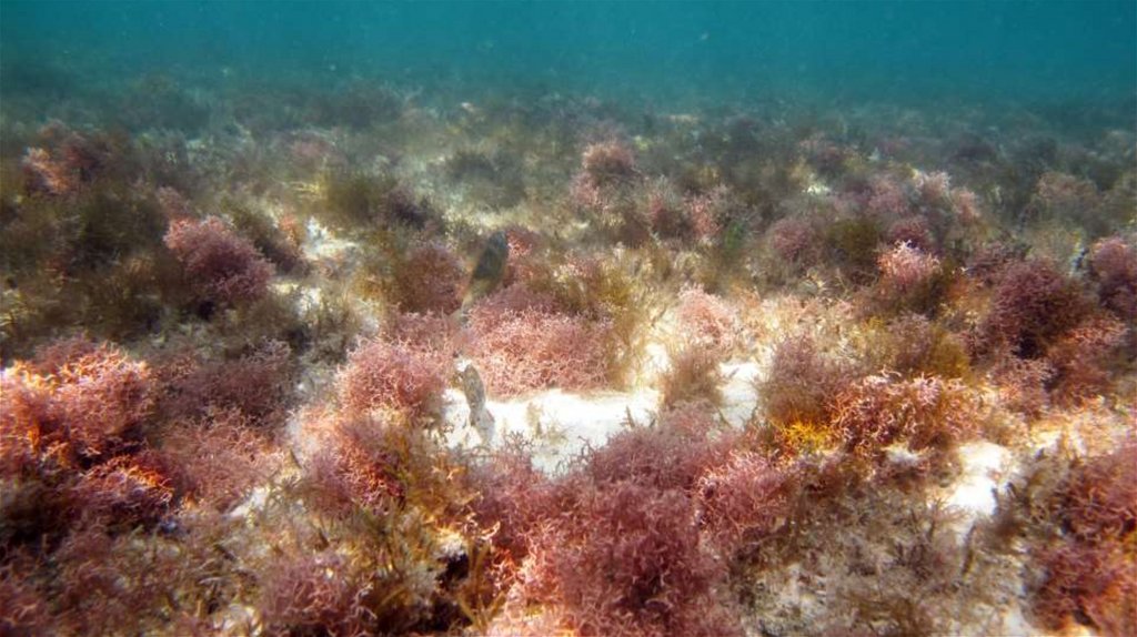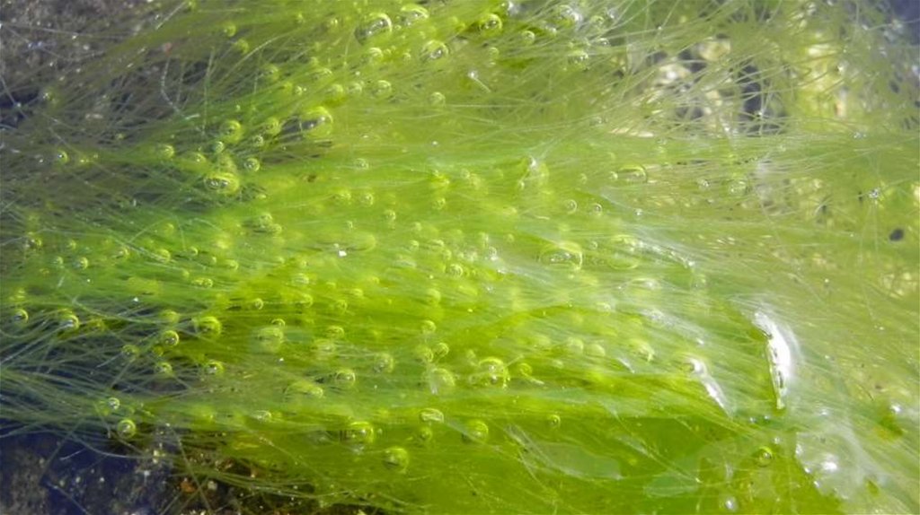 Поглощение углекислого газа из водыводорослями и насыщение воды кислородом.