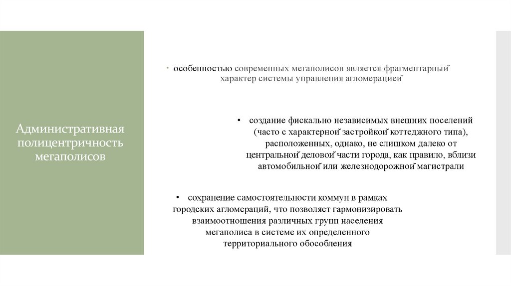 особенностью современных мегаполисов является фрагментарныйхарактер системы управления агломерацией