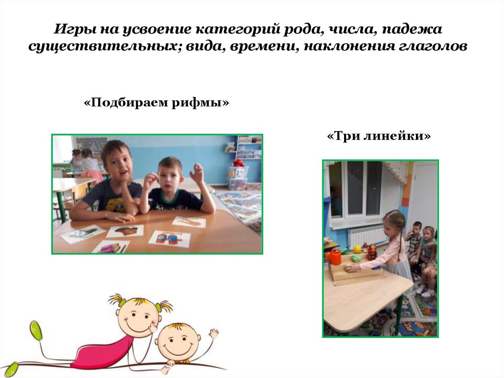 Игры на усвоение категорий рода, числа, падежасуществительных; вида, времени, наклонения глаголов