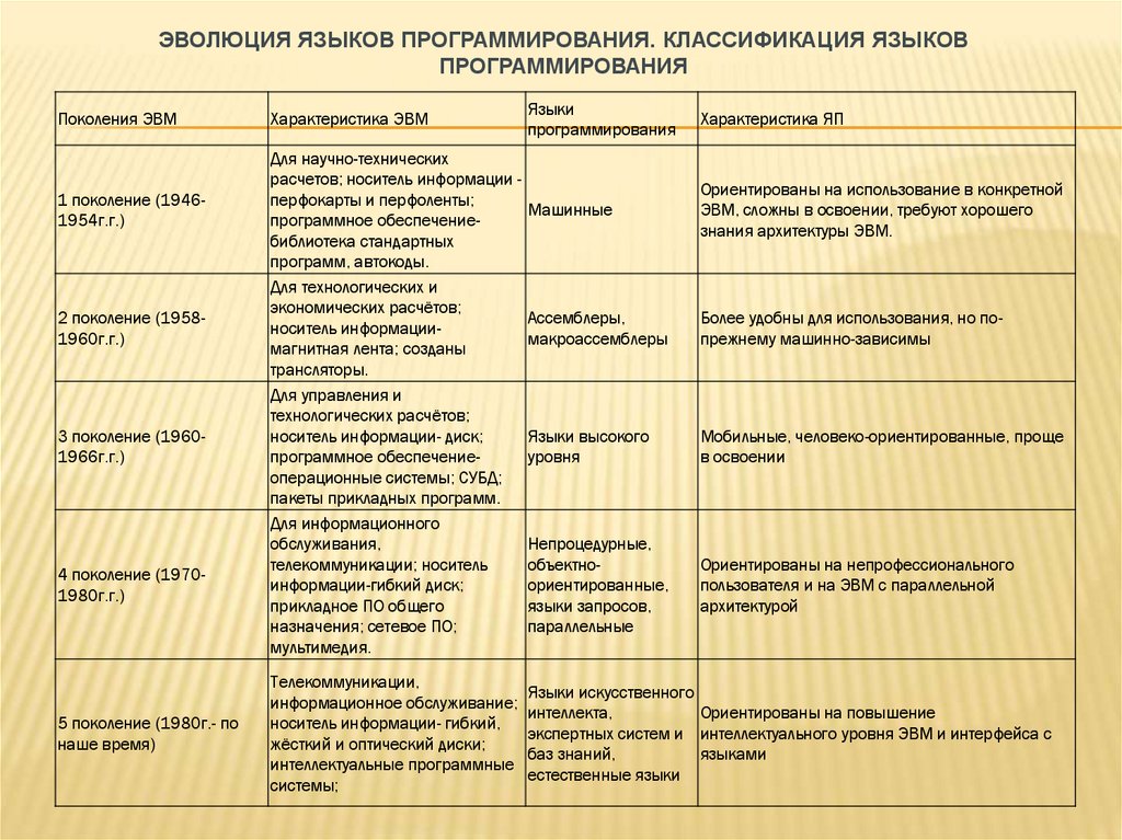 ЭВОЛЮЦИЯ ЯЗЫКОВ ПРОГРАММИРОВАНИЯ. КЛАССИФИКАЦИЯ ЯЗЫКОВПРОГРАММИРОВАНИЯ