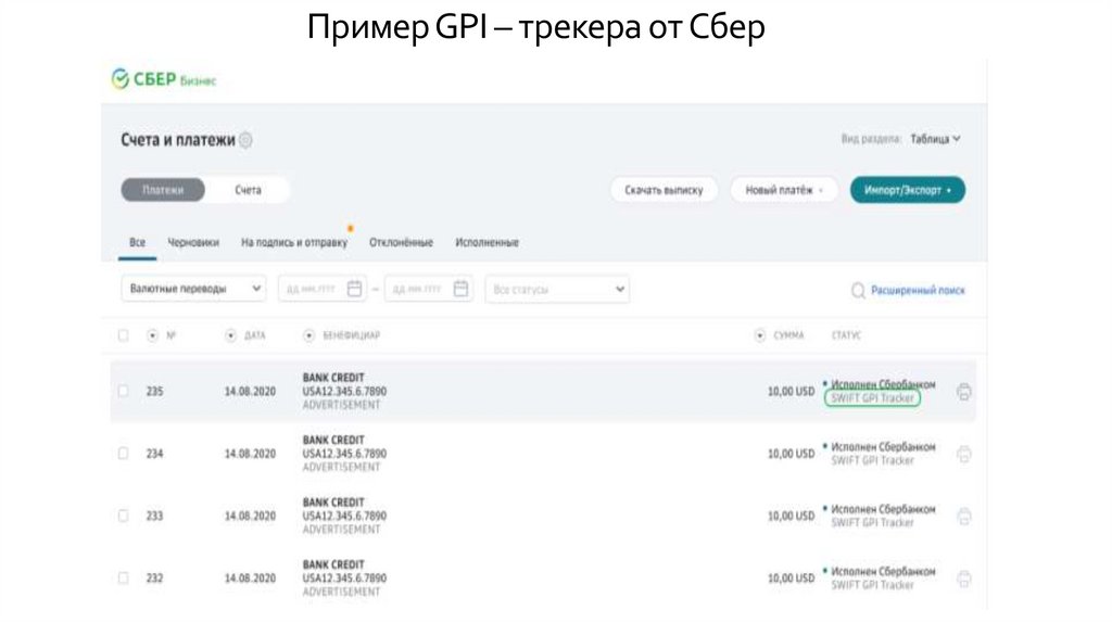 МПС и SWIFTПример GPI – трекера от СберКлючевой