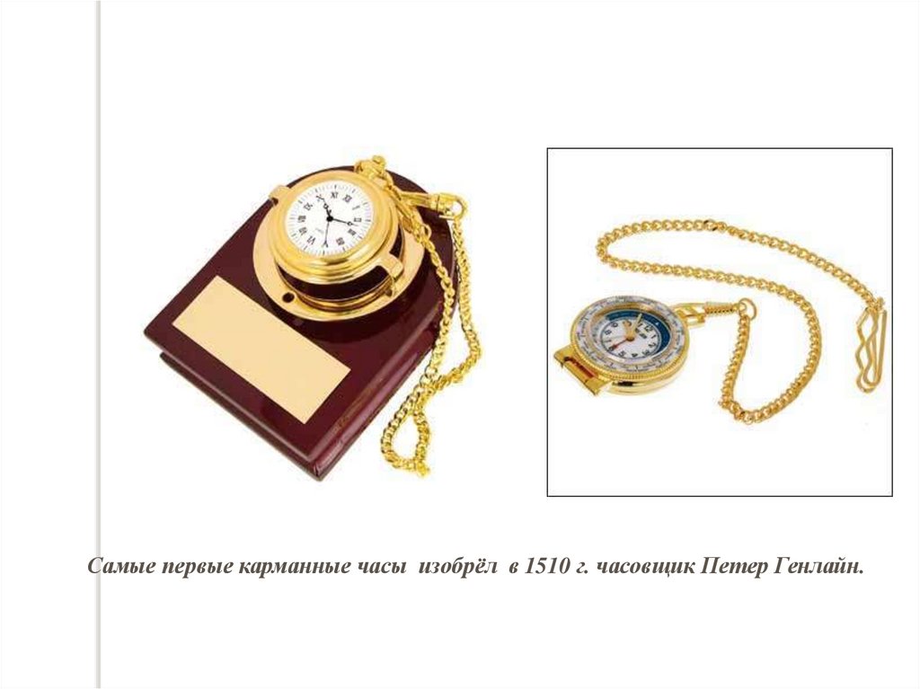 Самые первые карманные часы изобрёл в 1510 г. часовщик Петер Генлайн.6.