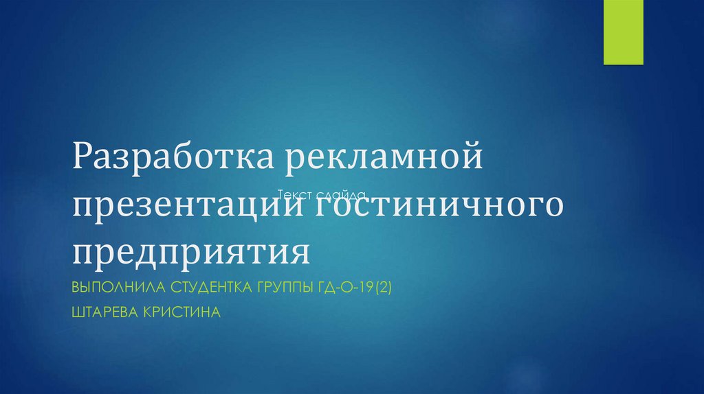 ВЫПОЛНИЛА СТУДЕНТКА ГРУППЫ ГД-О-19(2)