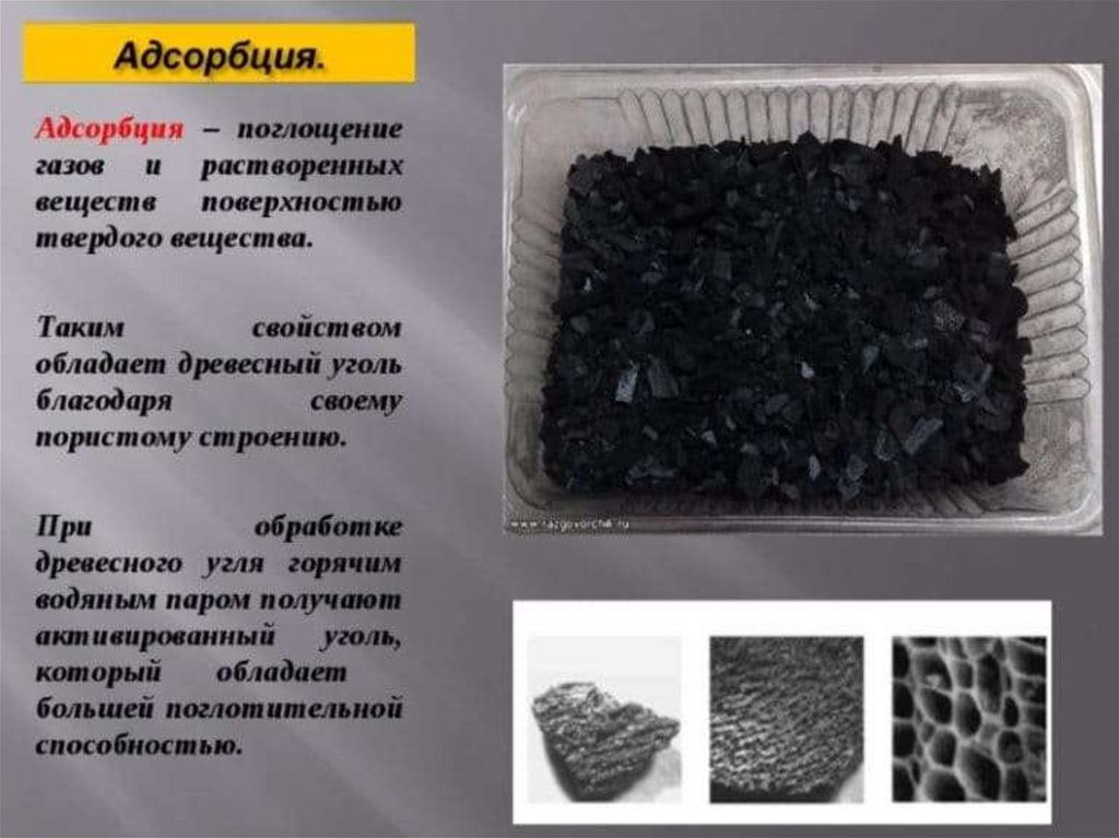 древесный уголь обладает способностью поглощать газы и растворенные вещества.
