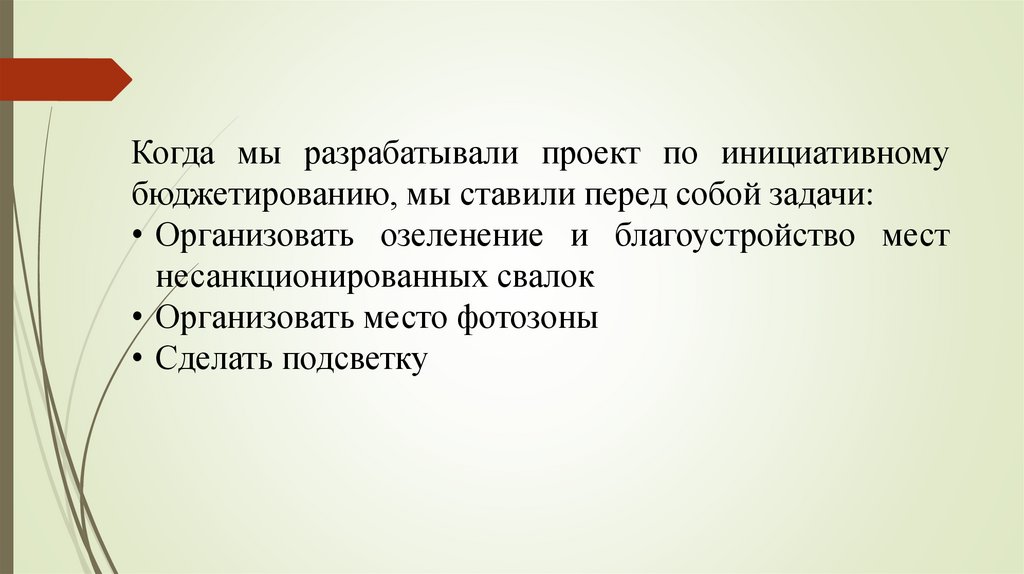 Когда мы разрабатывали проект по инициативномубюджетированию, мы ставили перед собой задачи: