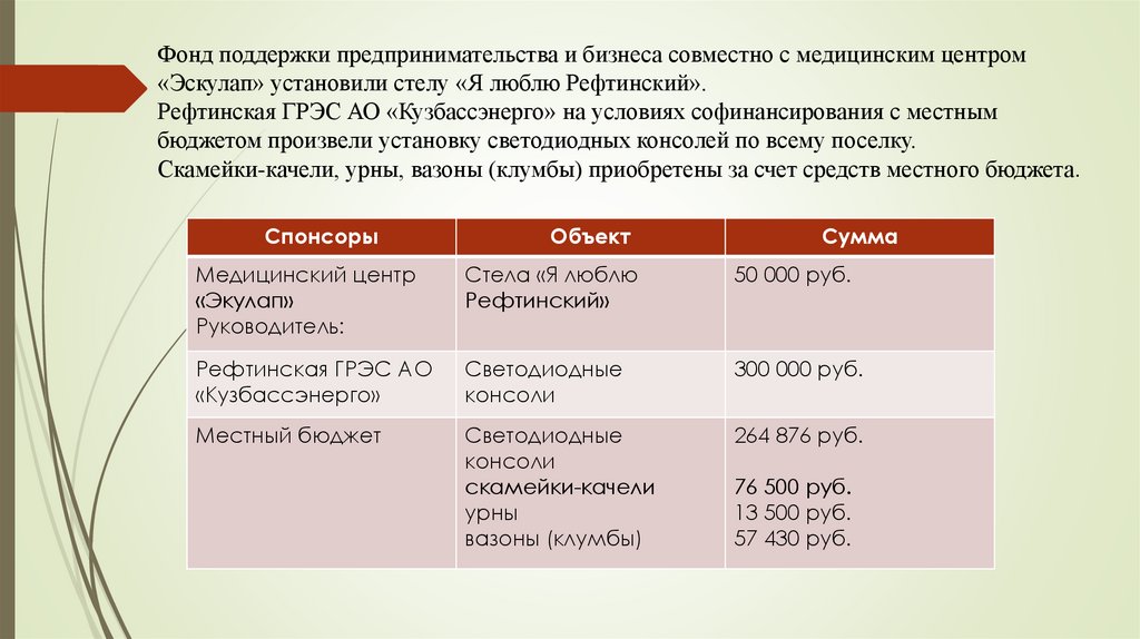 Рефтинская ГРЭС АО «Кузбассэнерго» на условиях софинансирования с местным