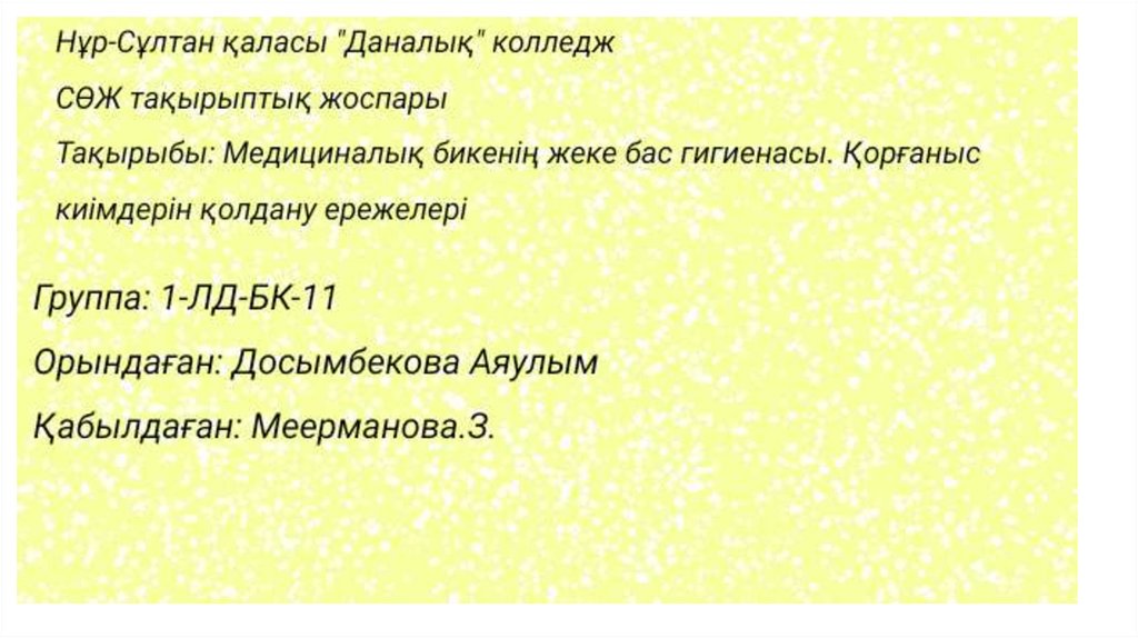 Медициналық бикенің жеке бас гигиенасы. Қорғаныс киімдерін қолдану ережелері