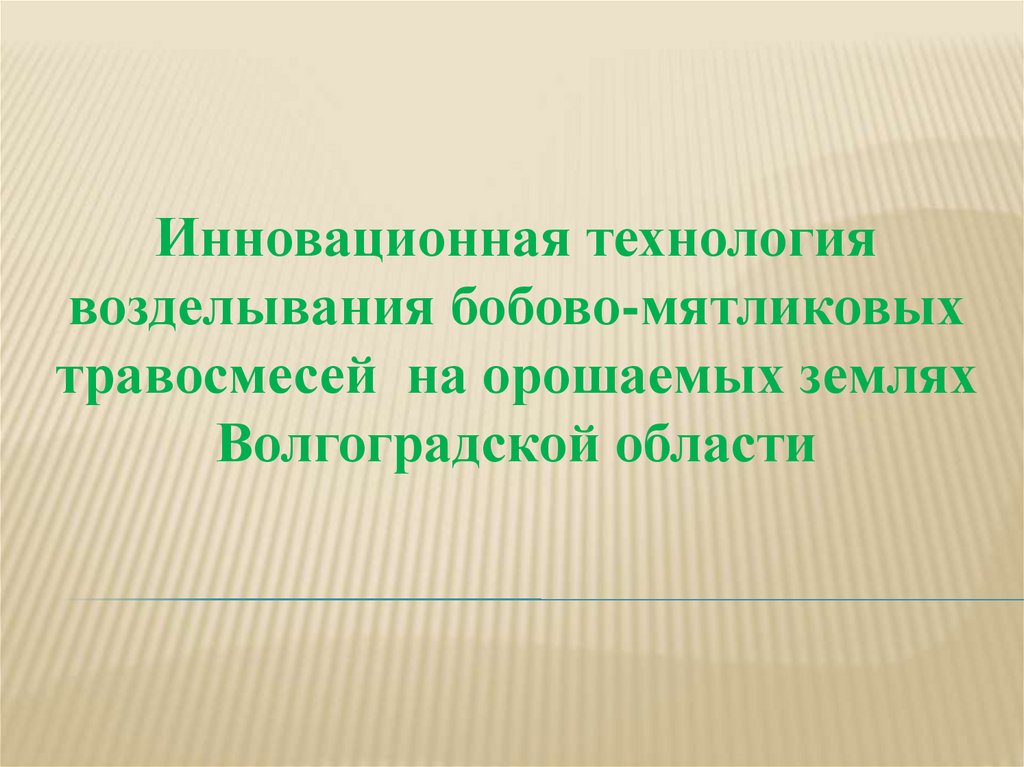 Инновационная технология возделывания бобово-мятликовых травосмесей на орошаемых землях Волгоградской области