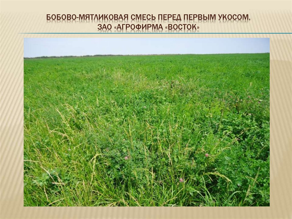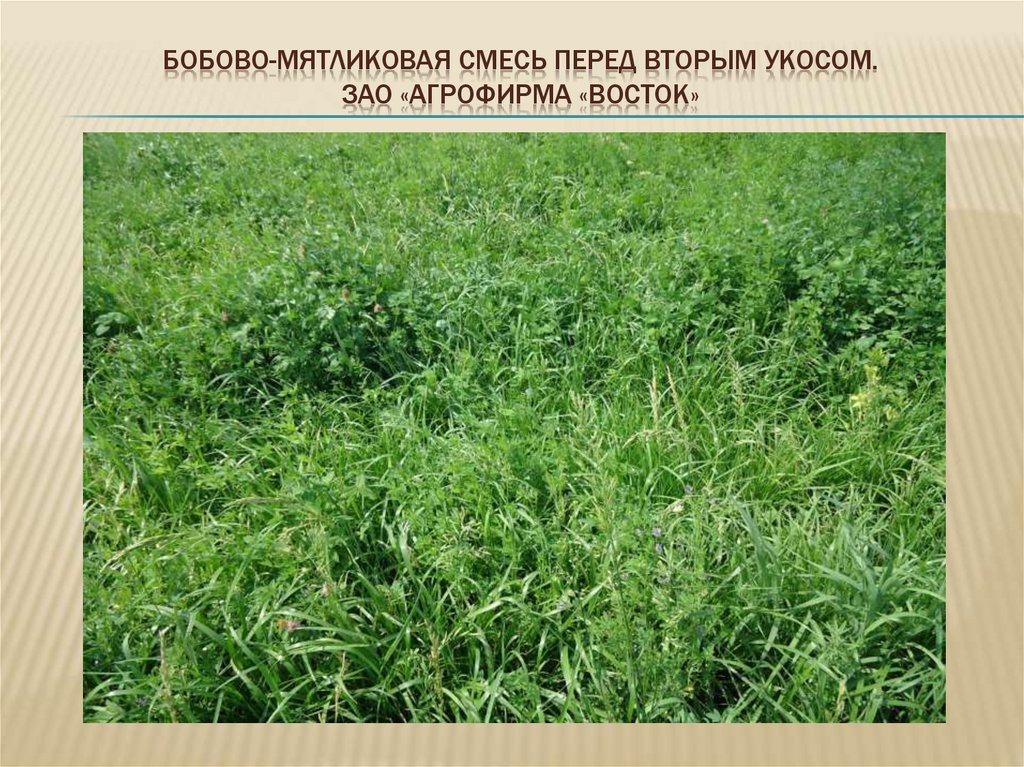 БОБОВО-МЯТЛИКОВАЯ СМЕСЬ ПЕРЕД ВТОРЫМ УКОСОМ.ЗАО «АГРОФИРМА «ВОСТОК»