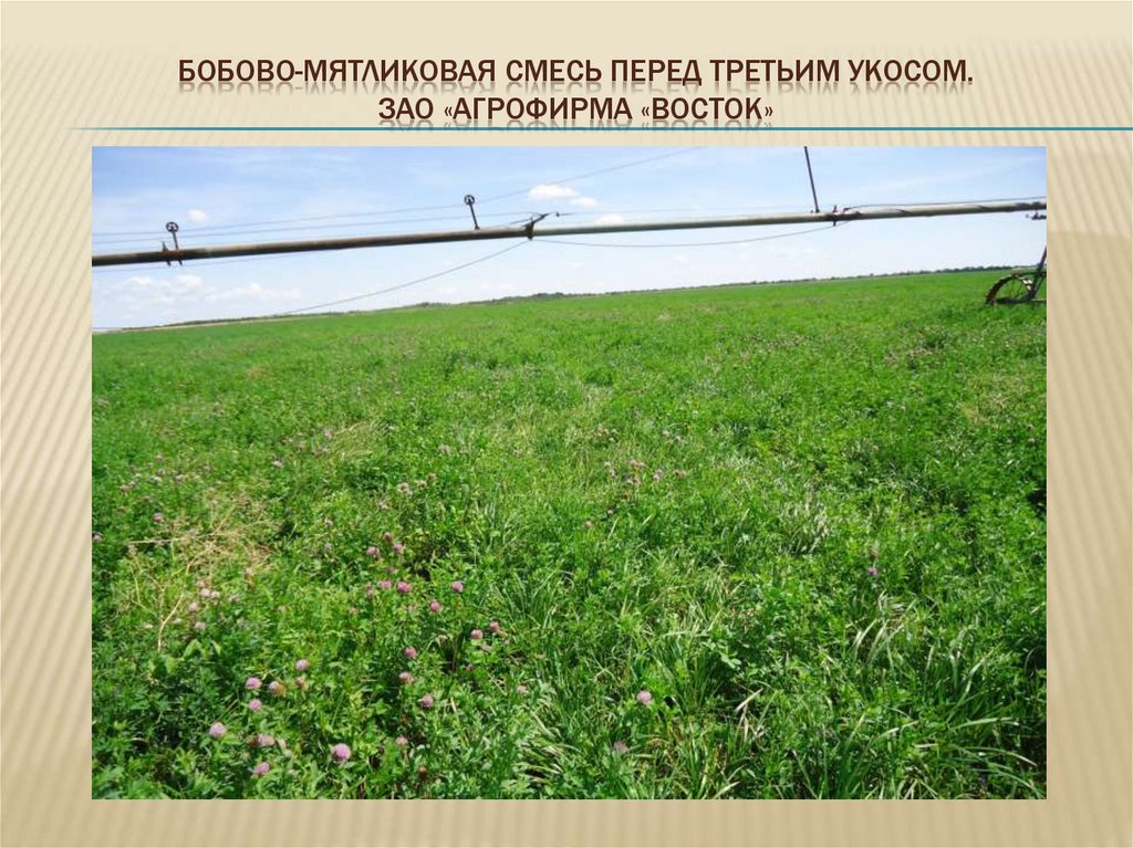 БОБОВО-МЯТЛИКОВАЯ СМЕСЬ ПЕРЕД ТРЕТЬИМ УКОСОМ.ЗАО «АГРОФИРМА «ВОСТОК»