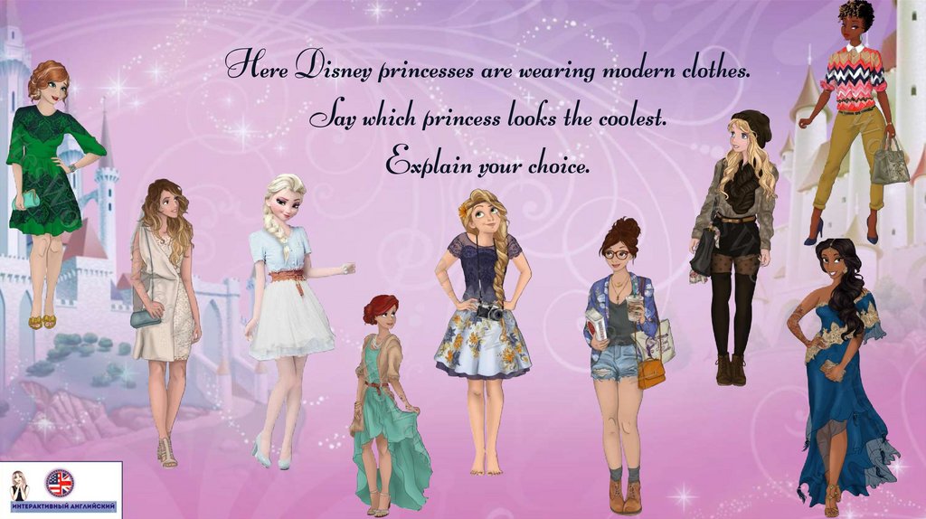 Here Disney princesses are wearing modern clothes.Say which princess looks the coolest.