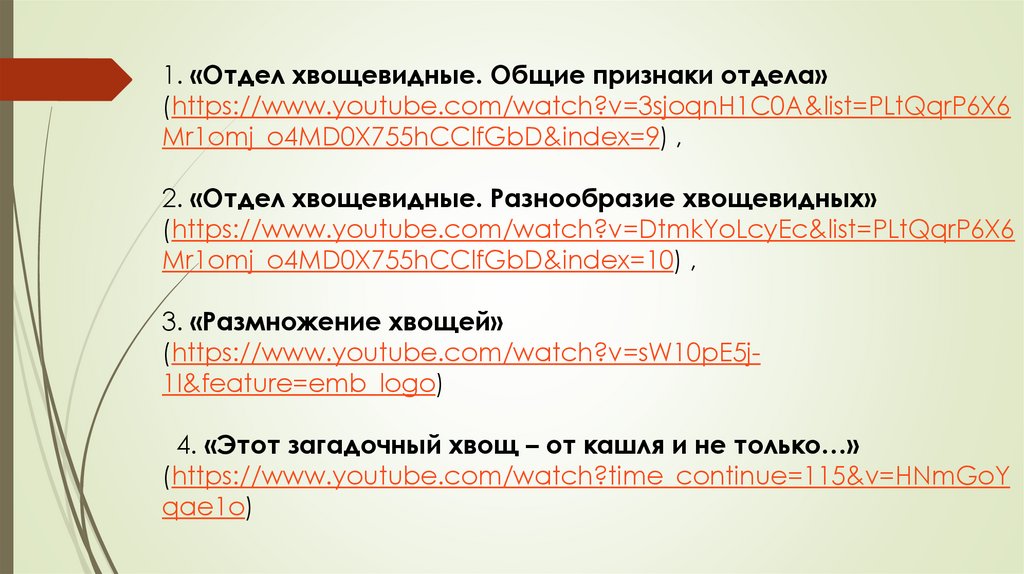 1. «Отдел хвощевидные. Общие признаки отдела»(https://www.youtube.com/watch?v=3sjoqnH1C0A&list=PLtQqrP6X6