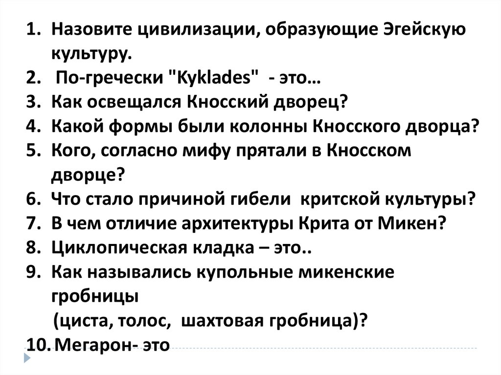 1. Назовите цивилизации, образующие Эгейскуюкультуру.
