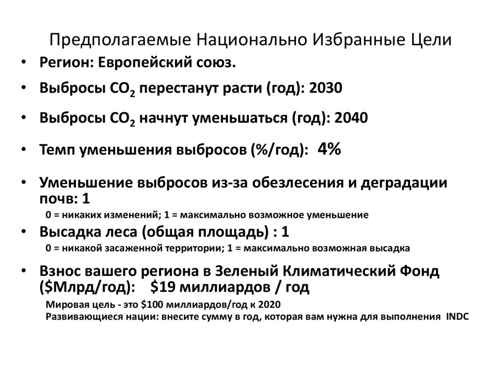 Предполагаемые Национально Избранные Цели• Регион: Европейский союз.