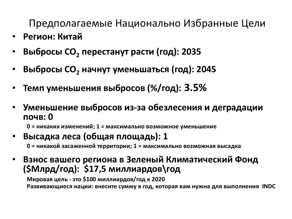 Предполагаемые Национально Избранные Цели• Регион: Китай