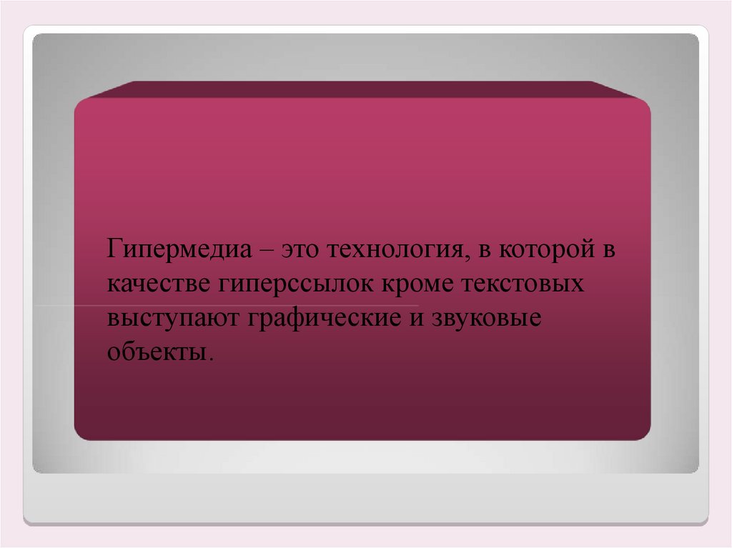 Гипермедиа – это технология, в которой вкачестве гиперссылок кроме текстовых