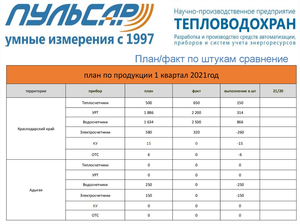План/факт по штукам сравнениеплан по продукции 1 квартал 2021год