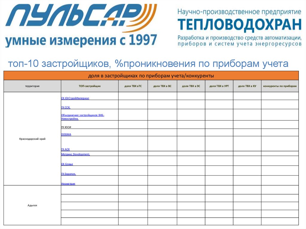 топ-10 застройщиков, %проникновения по приборам учетадоля в застройщиках по приборам учета/конкуренты