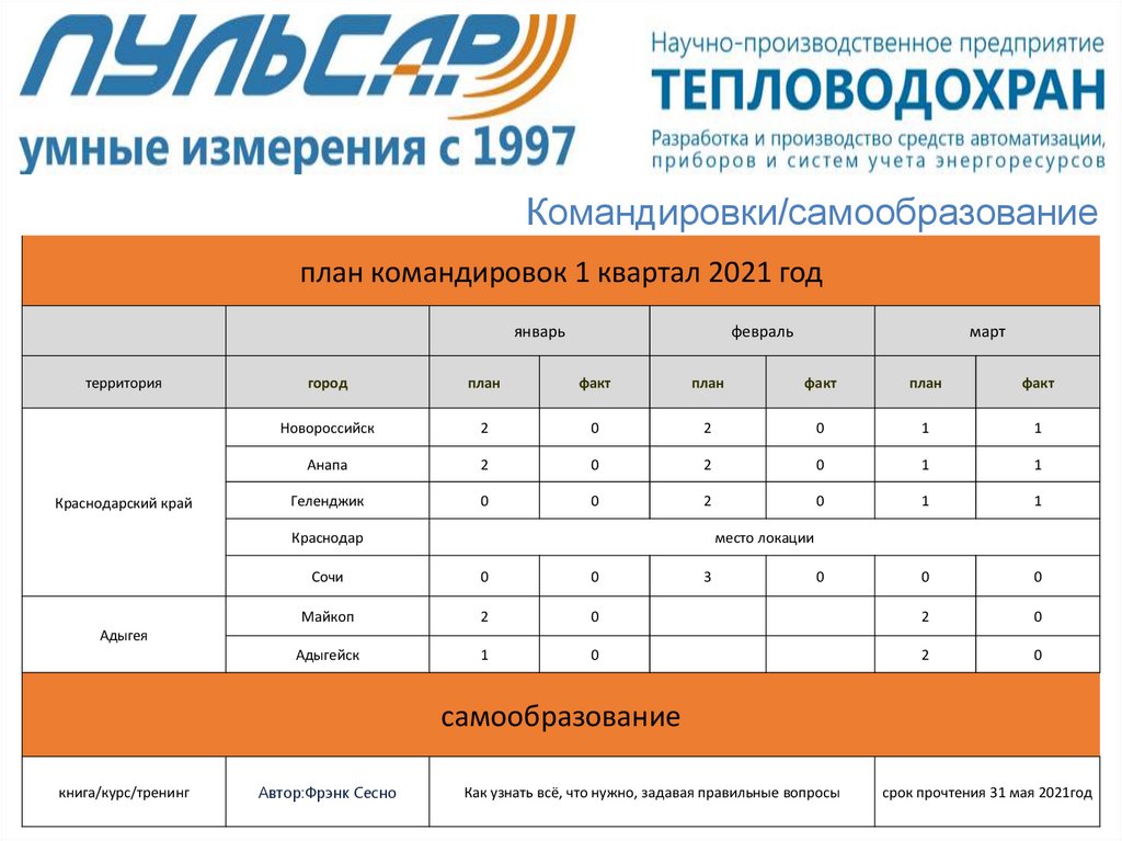 Командировки/самообразованиеплан командировок 1 квартал 2021 год