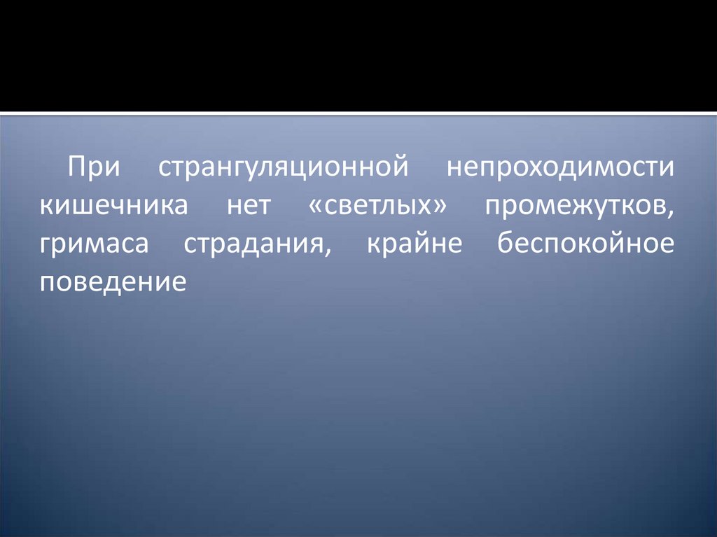 При странгуляционной непроходимостикишечника нет «светлых» промежутков,