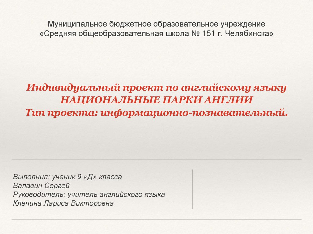 Муниципальное бюджетное образовательное учреждение«Средняя общеобразовательная школа № 151 г. Челябинска»