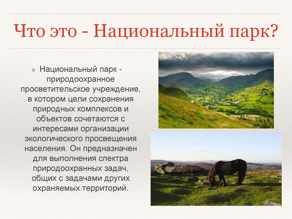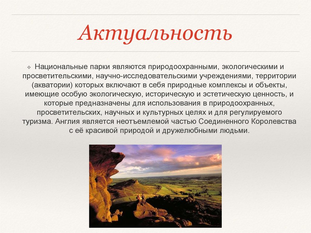 АктуальностьНациональные парки являются природоохранными, экологическими и
