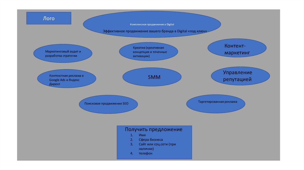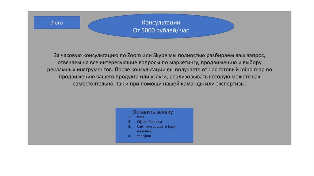 рекламных инструментов. После консультации вы получаете от нас готовый mind map по