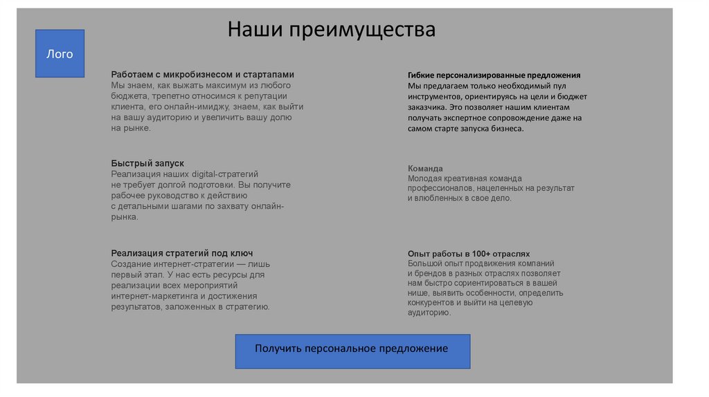 перспективами развития, предложениями по отстройке от конкурентов и часовую