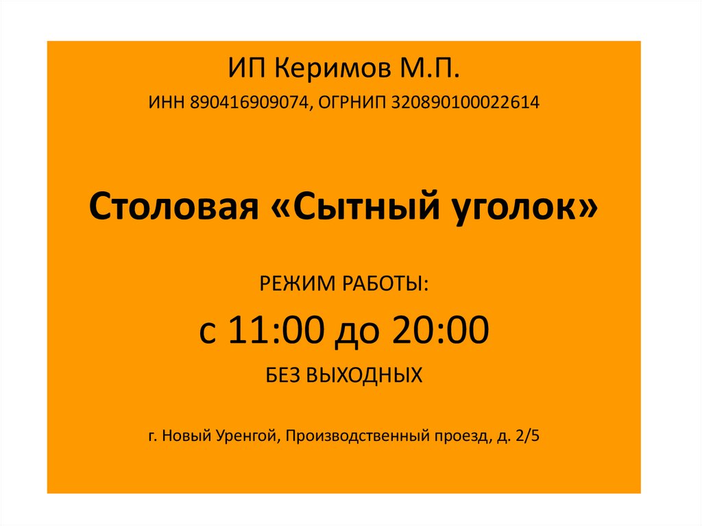 ИНН 890416909074, ОГРНИП 320890100022614