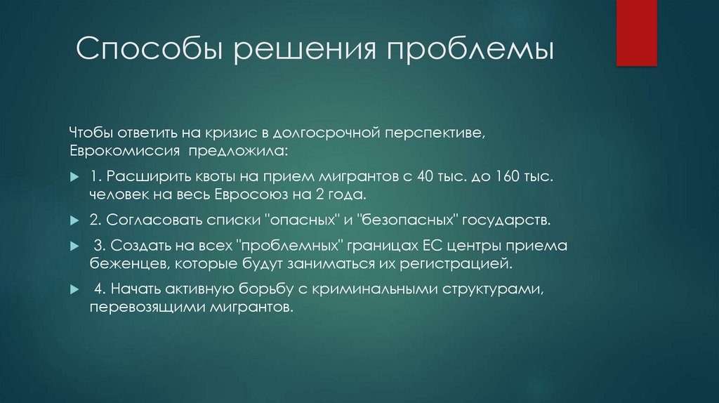 Способы решения проблемыЧтобы ответить на кризис в долгосрочной перспективе,