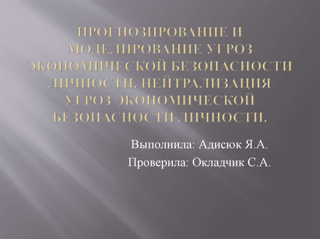Прогнозирование и моделирование угроз экономической безопасности личности