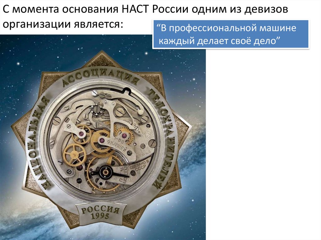 С момента основания НАСТ России одним из девизоворганизации является: