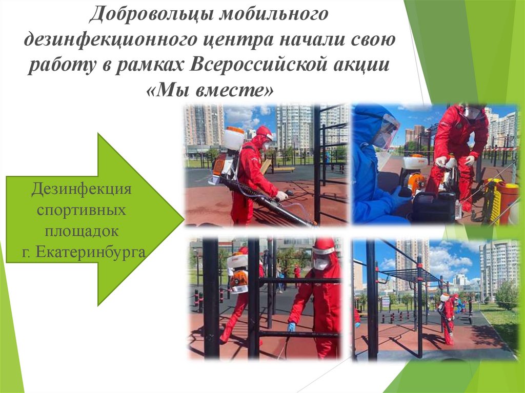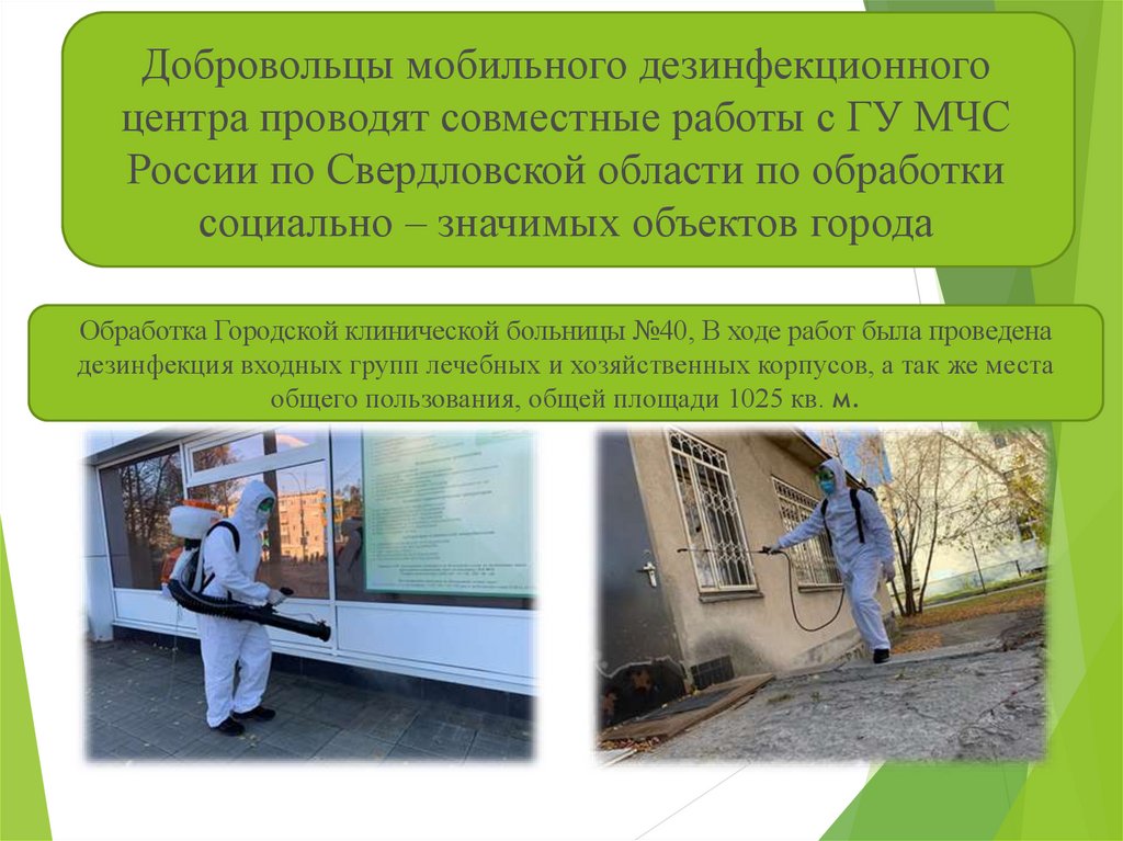 Добровольцы мобильного дезинфекционногоцентра проводят совместные работы с ГУ МЧС