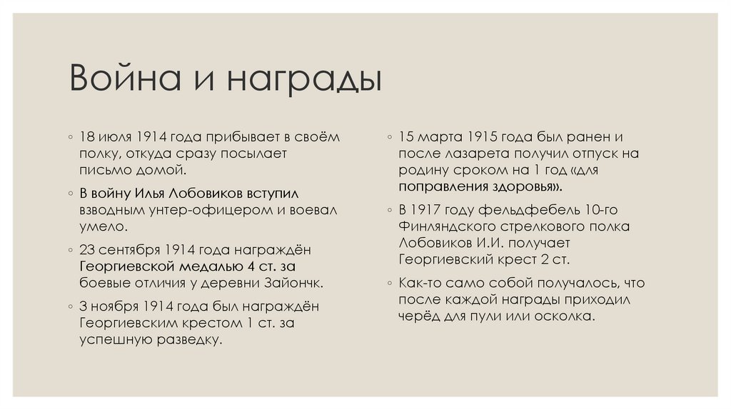 Война и награды◦ 18 июля 1914 года прибывает в своём