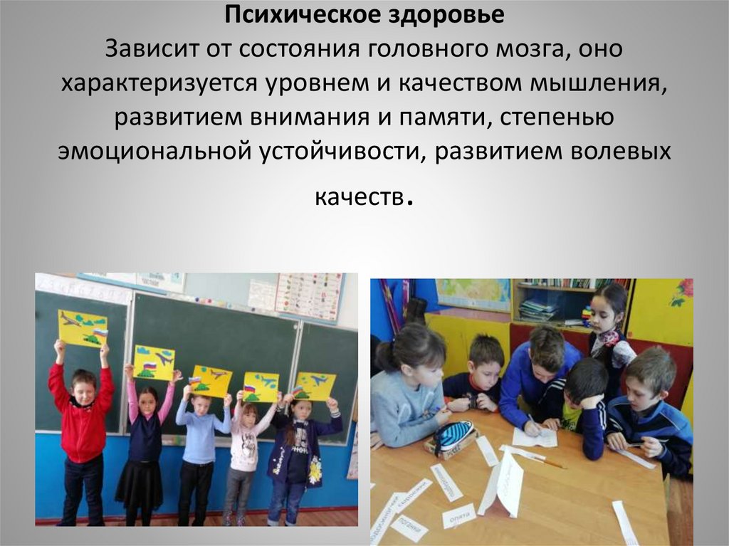 Психическое здоровьеЗависит от состояния головного мозга, оно