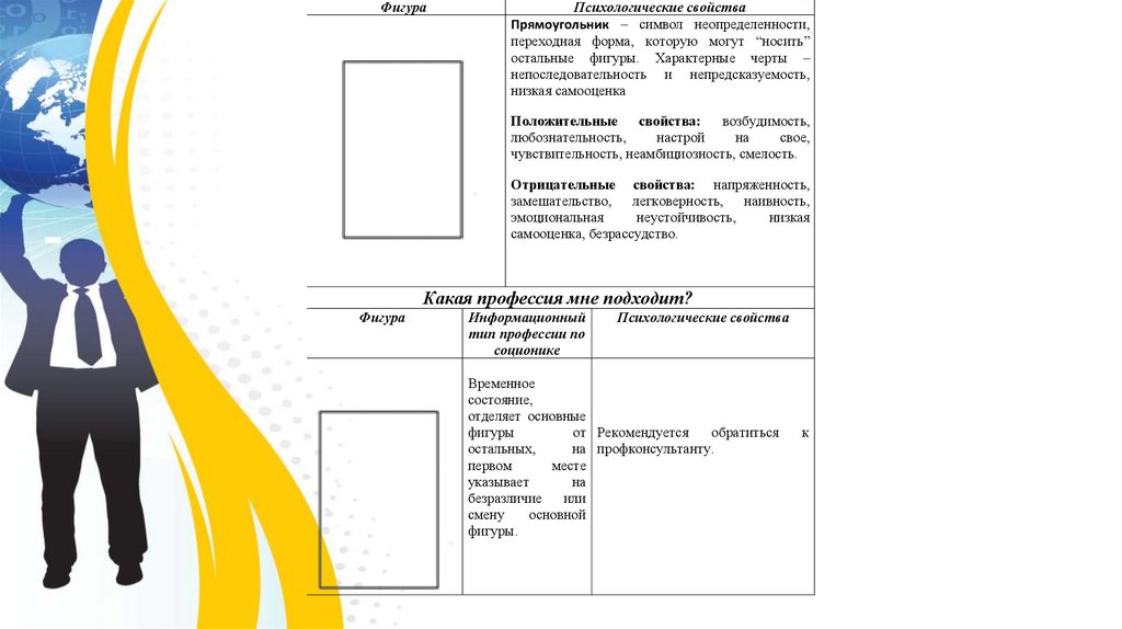 остальные фигуры. Характерные черты –