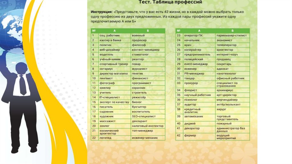 - Методика «Профессиональные занятия»