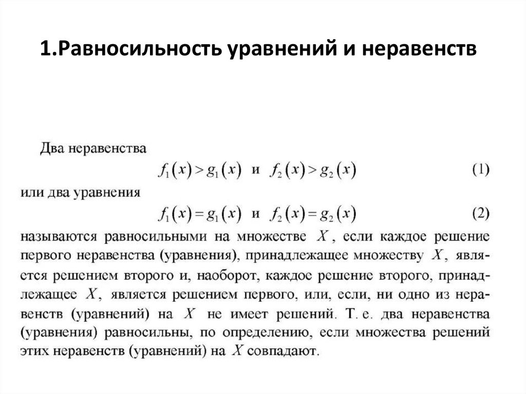Равносильные переходыПусть функции f(x), g(x), h(x) определены на Х.