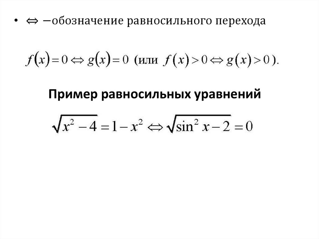 • ⇔ −обозначение равносильного переходаПример равносильных уравнений