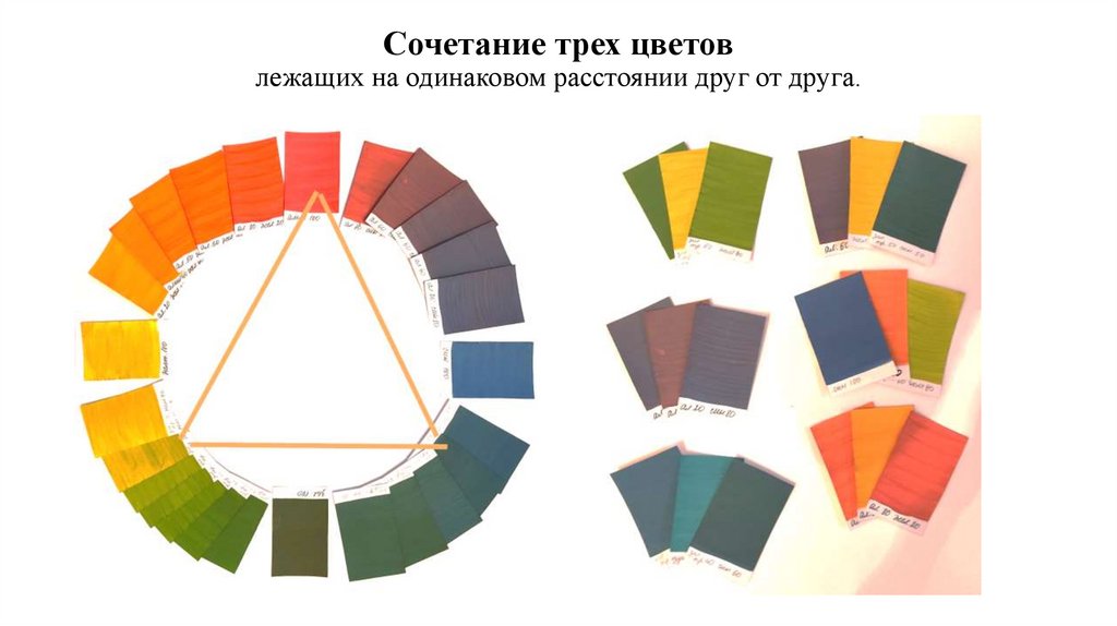 Сочетание трех цветовлежащих на одинаковом расстоянии друг от друга.