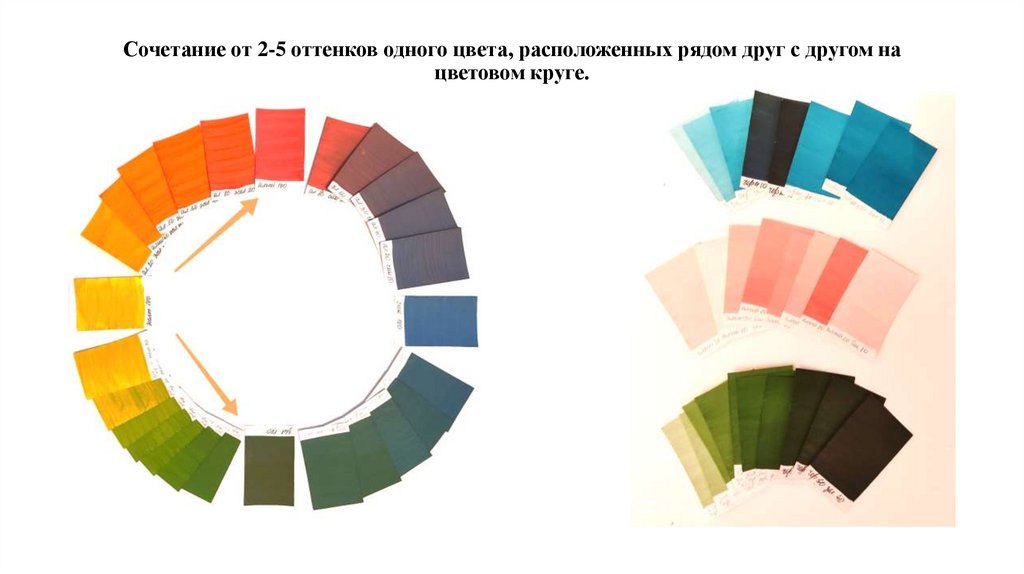 Сочетание от 2-5 оттенков одного цвета, расположенных рядом друг с другом нацветовом круге.