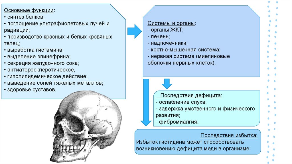 Вместе с лизином и аргинином образует группу основных аминокислот. Входит в состав многих ферментов, является