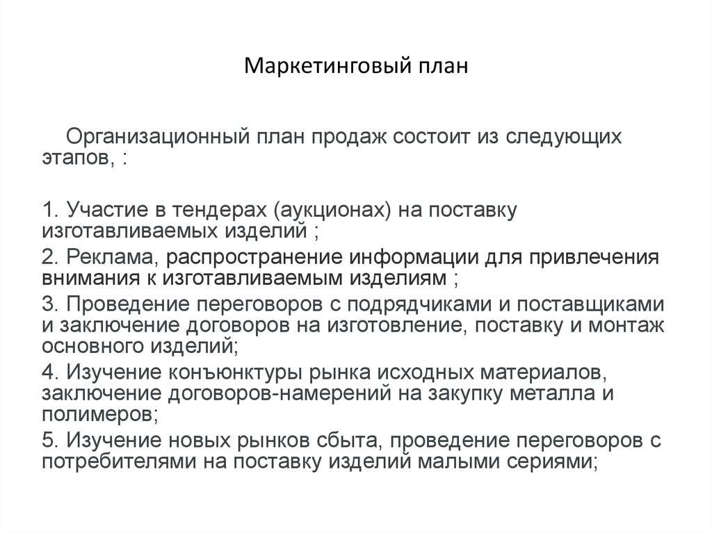 Маркетинговый планОрганизационный план продаж состоит из следующих