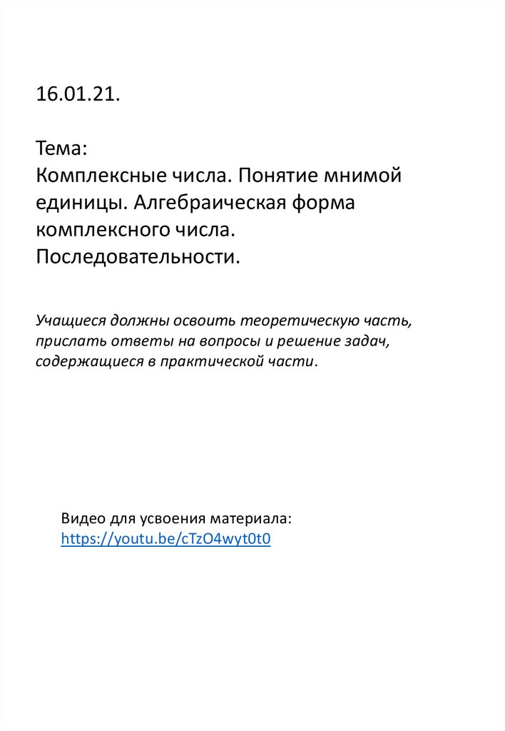 Комплексные числа. Понятие мнимой единицы. Алгебраическая форма комплексного числа. Задания