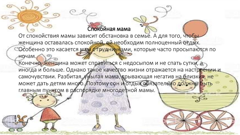 Спокойная мамаОт спокойствия мамы зависит обстановка в семье. А для того, чтобы