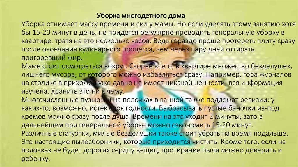 помощи в некоторых делах. Детей также необходимо приучать к порядку и