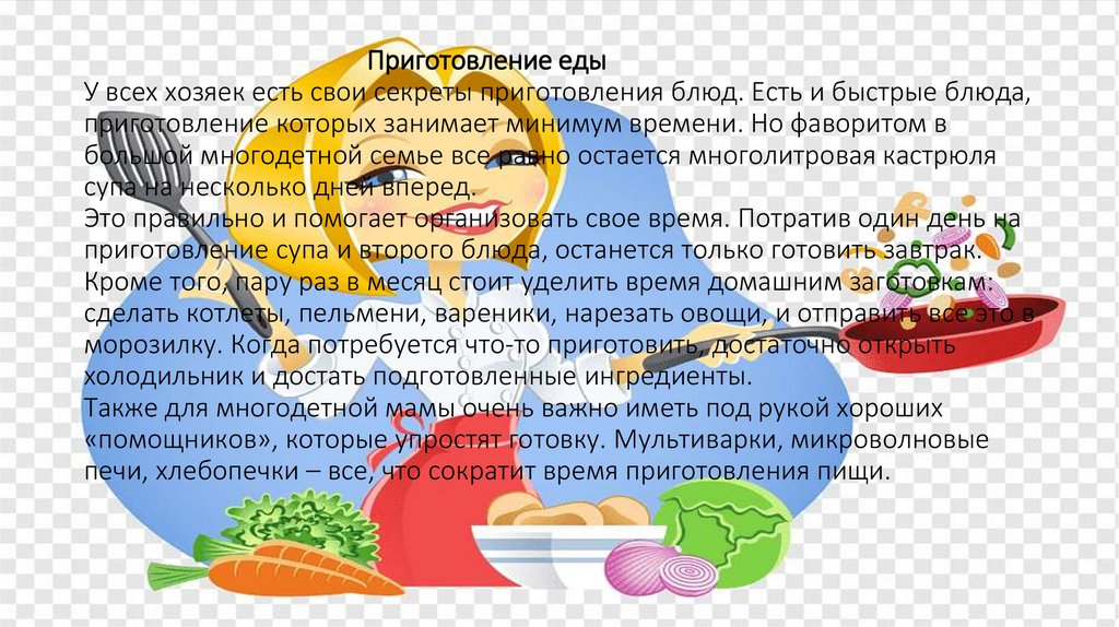 Приготовление едыУ всех хозяек есть свои секреты приготовления блюд. Есть и быстрые блюда,