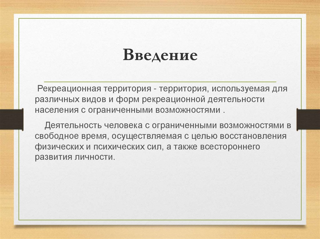 ВведениеРекреационная территория - территория, используемая для