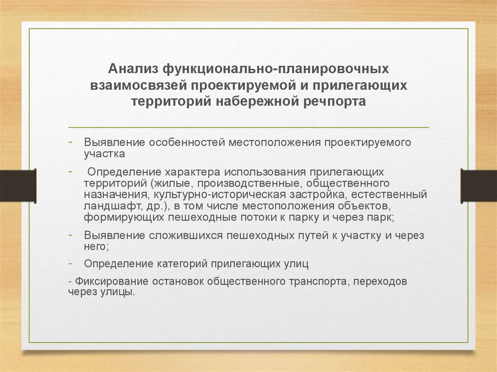 Анализ функционально-планировочныхвзаимосвязей проектируемой и прилегающих